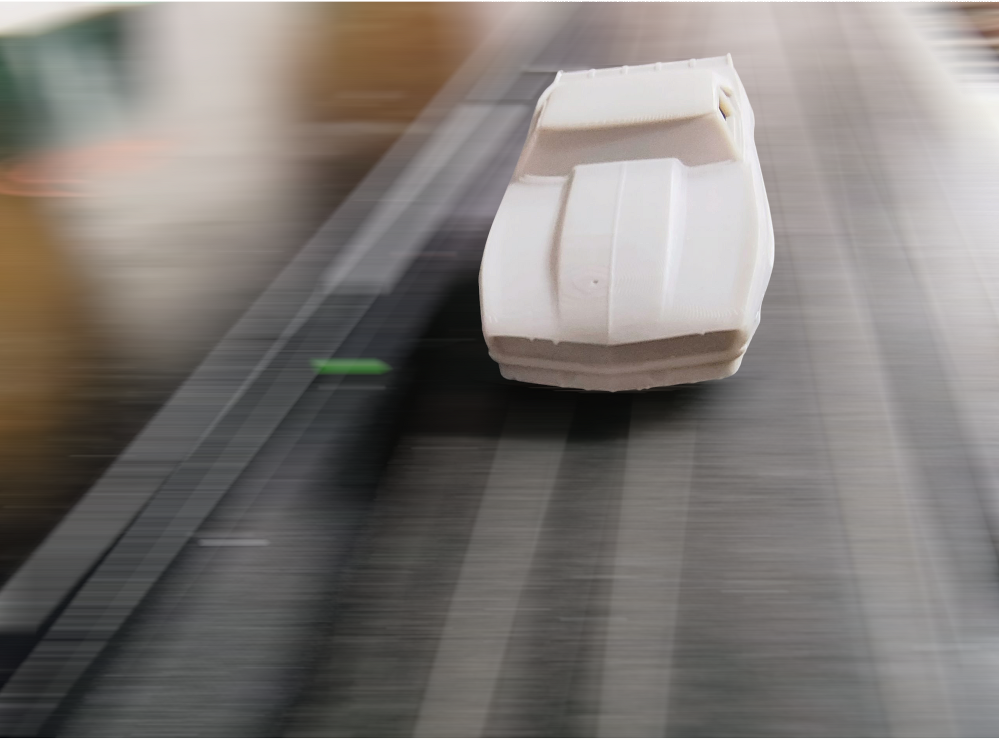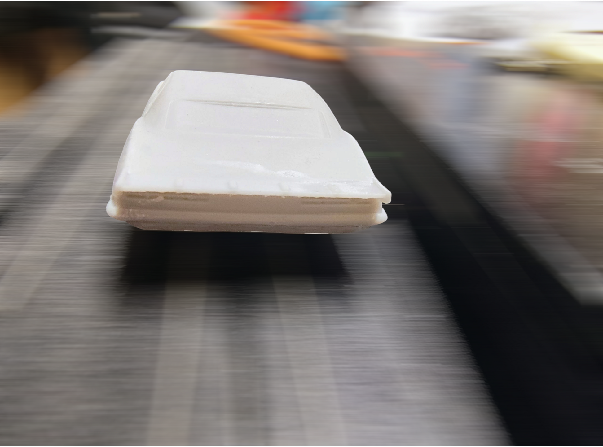 This is a wide body to cover four gear chassis. It sits super low and handles the track. Has exhaust out the sides and a drag wing.
