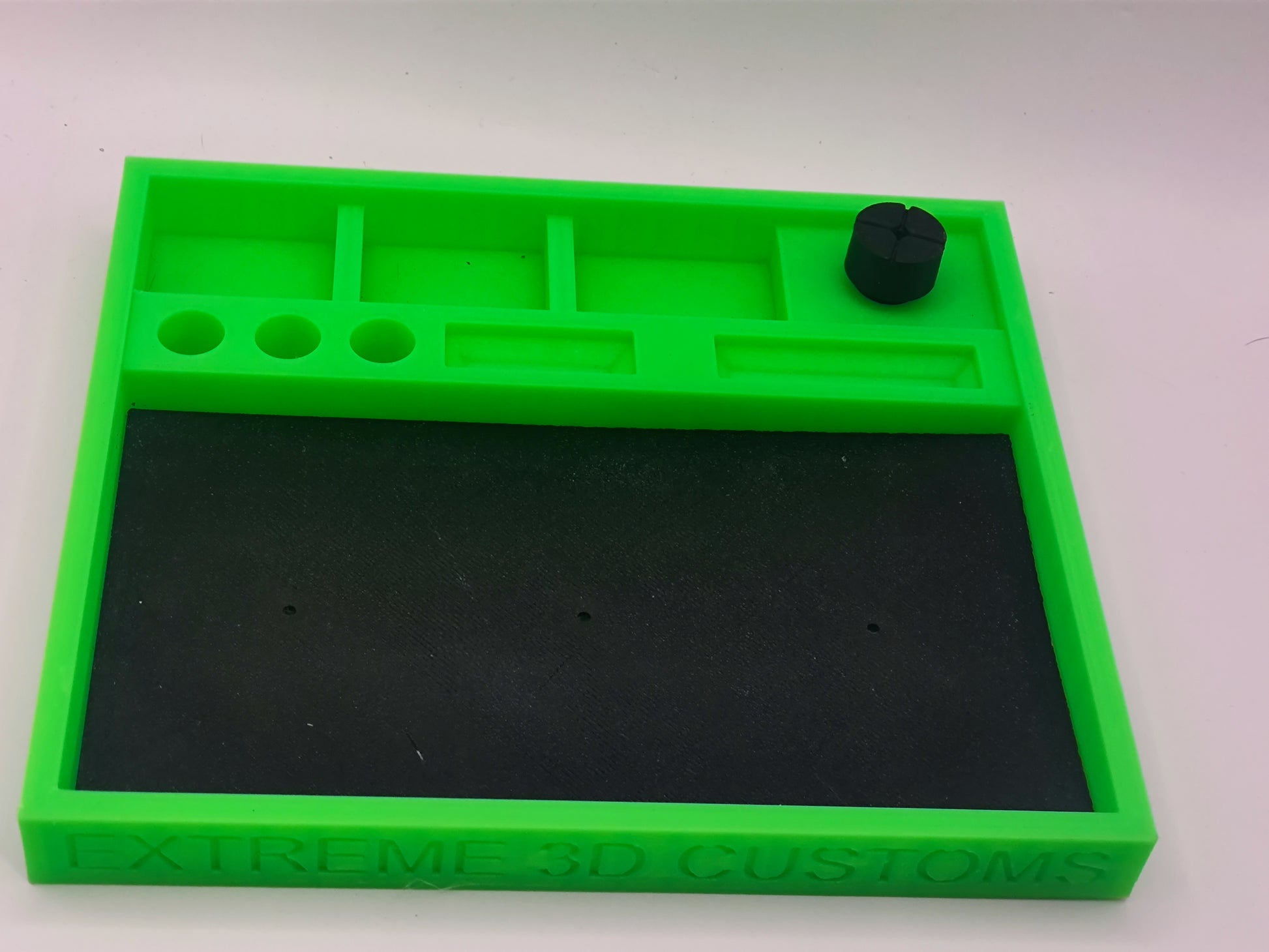 Keep your pit area clean, organized, and race-ready with this HO Scale Slot Car Race Tray from Extreme 3D Customs. Built for track-side tuning and bench work, this tray gives you dedicated spots for the small parts that always try to disappear mid-race—screws, brushes, springs, gears, and hardware—plus a large work area to stage your car while you wrench, clean, and make quick adjustments.