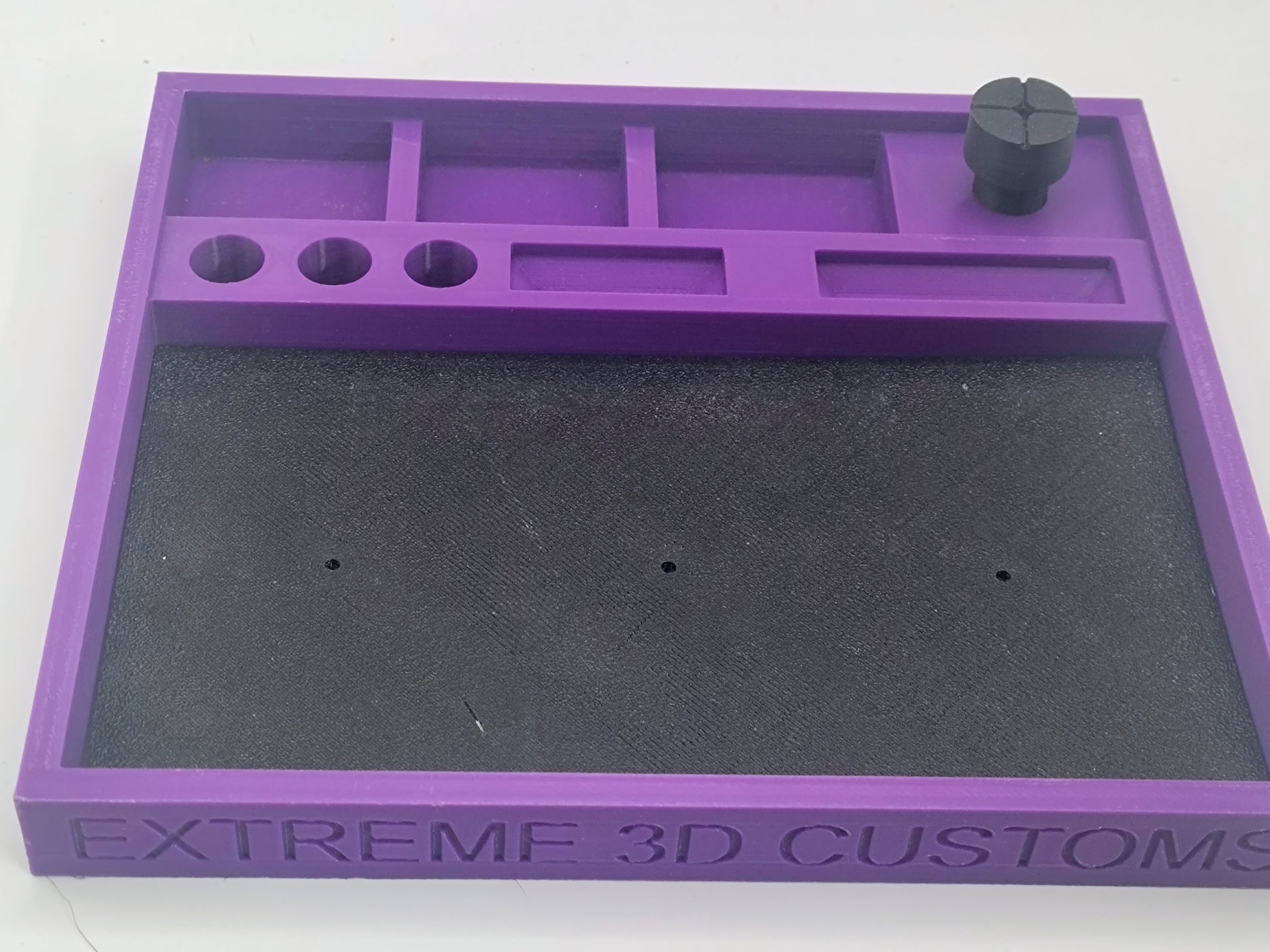 Keep your pit area clean, organized, and race-ready with this HO Scale Slot Car Race Tray from Extreme 3D Customs. Built for track-side tuning and bench work, this tray gives you dedicated spots for the small parts that always try to disappear mid-race—screws, brushes, springs, gears, and hardware—plus a large work area to stage your car while you wrench, clean, and make quick adjustments.