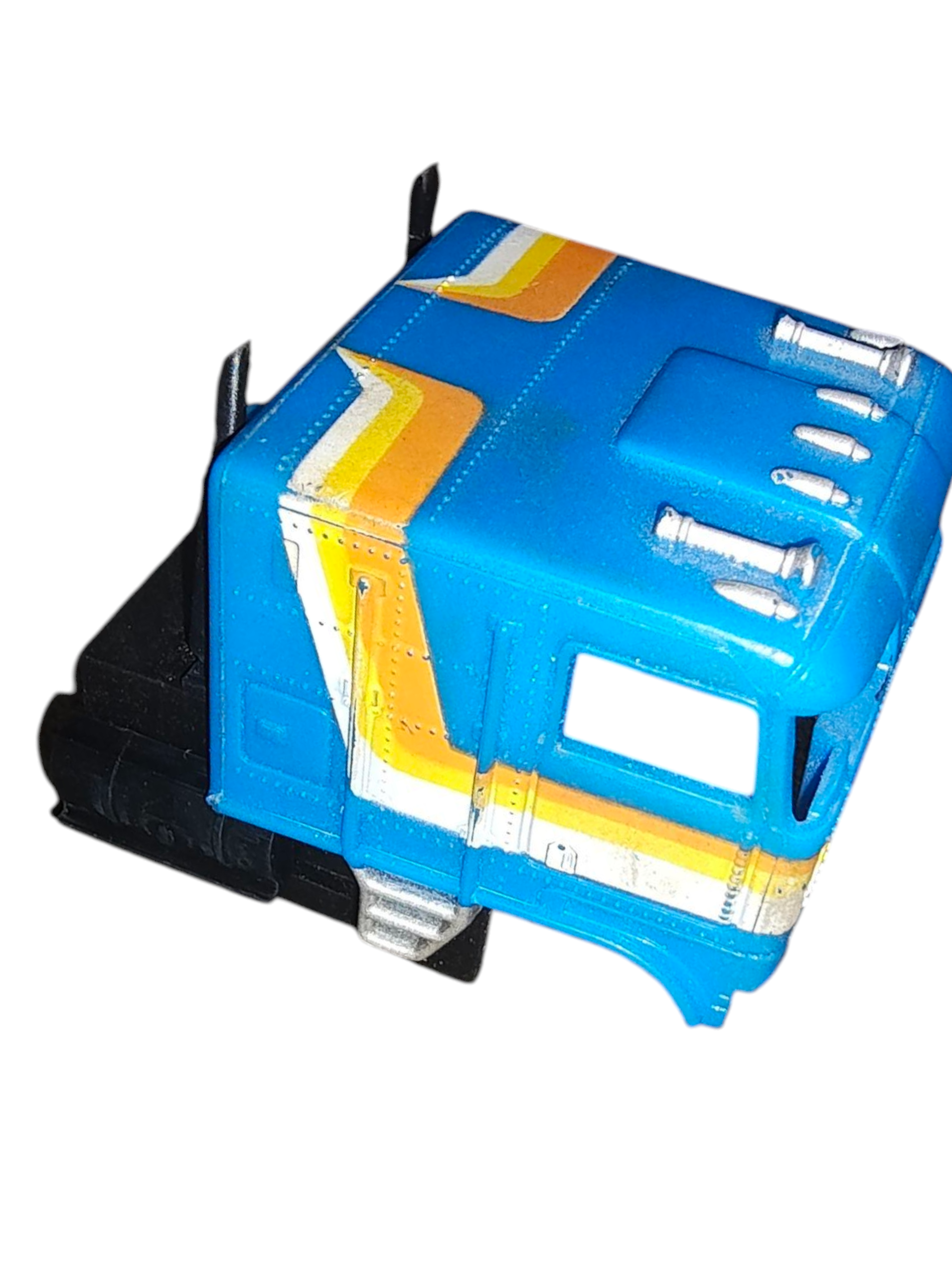 This Tyco Us-1 trucking cab over replacement exhaust stacks.